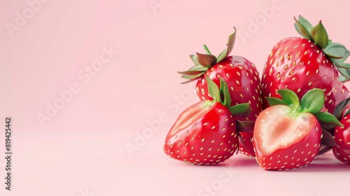 Strawberries, a photorealistic illustration against pastel pink background with copy space for text or logo, beautifully illuminated by studio lighting
