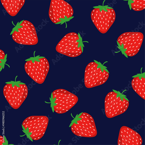 Strawberry seamless pattern. Strawberries repeatable background. Design for wrapping paper, fabric, backdrop, wallpaper. Fruit graphic element, tile decoration.