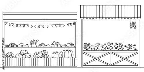 Street market graphic black white sketch illustration vector