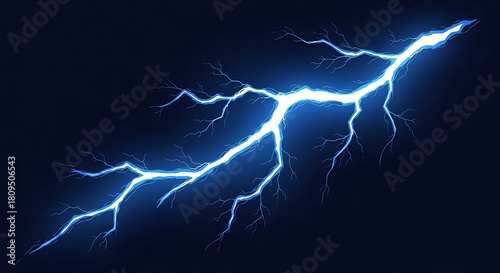 Striking Blue Lightning Bolt Against a Dark Night Sky.
