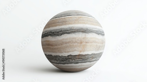 Striking round stone with unique striped patterns in earthy tones isolated on a clean white background perfect for design and decor projects