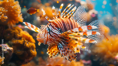 Striped Lionfish in Coral Reef Realistic Image