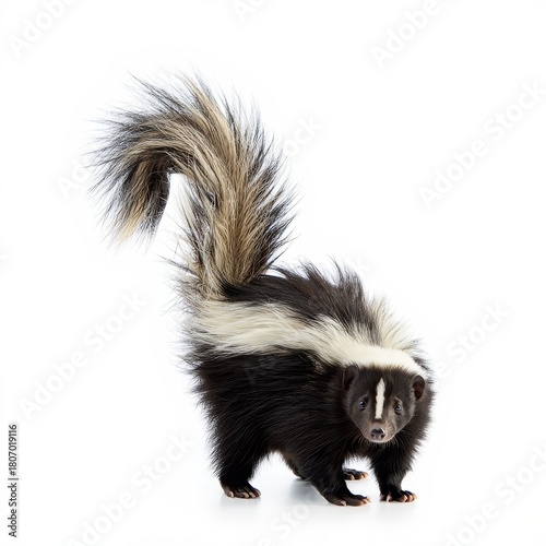 Striped Skunk Standing on White Background - Wildlife Portrait