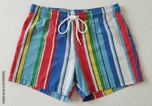 Striped swim trunks with drawstring on light background