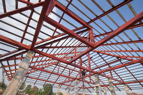 structural steel beam on roof of building residential constructi