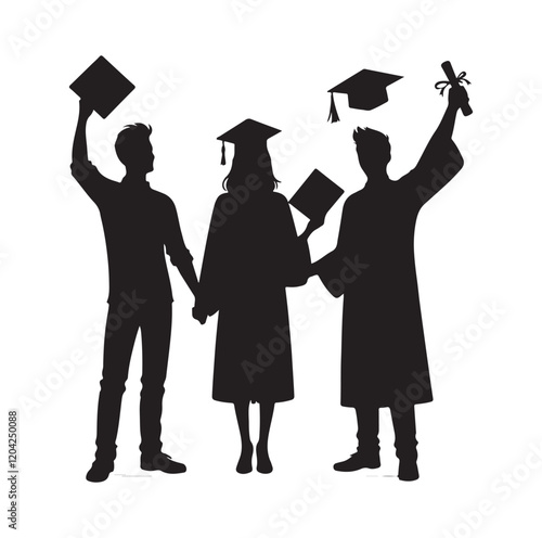 Student And Parents Celebrate Graduation silhouette vector illustration