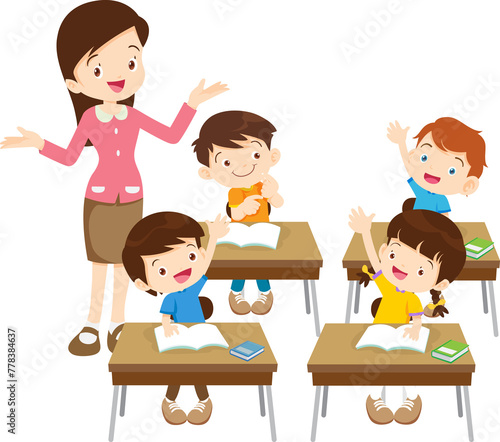 students and teacher in classroom children learning education concept