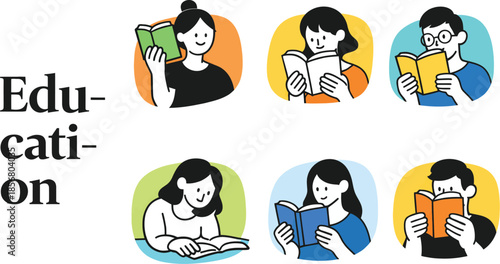 Students Reading Books Cartoon Illustration Education Learning Concept White Background