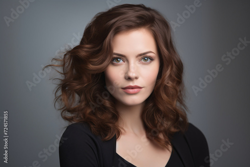 Studio portrait photo of a young beautiful elegant Brazilian female businesswoman lady wearing smart casual business attire suit posing with a series moments of emotion and gesture