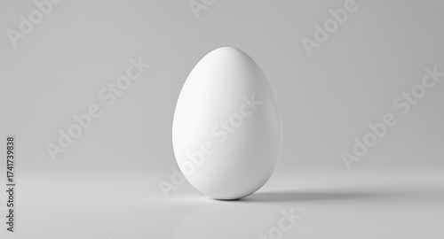 Studio shot of a single, white egg on a clean, neutral background, with long shadow.