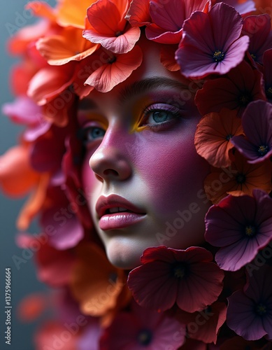 study of flower petals and human face, artistic