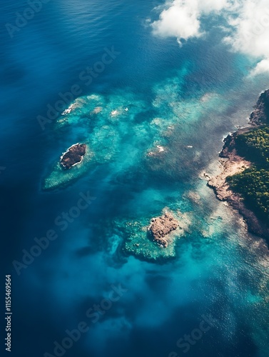 Stunning Aerial View of Vibrant Tropical Coral Reefs in Clear Blue Ocean Waters : Generative AI