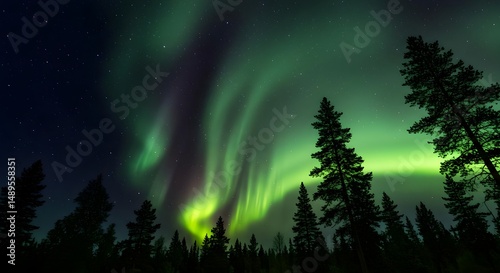 Stunning Aurora Borealis Over Forest at Night