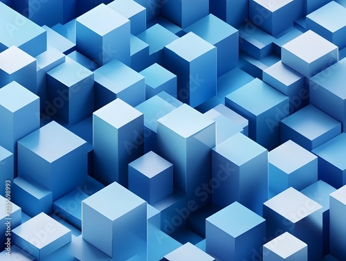 Stunning Blue 3D Geometric Cube Pattern with Isometric Design and Minimalist Background