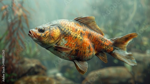 Stunning Close-Up of a Goldfish Swimming in an Aquarium