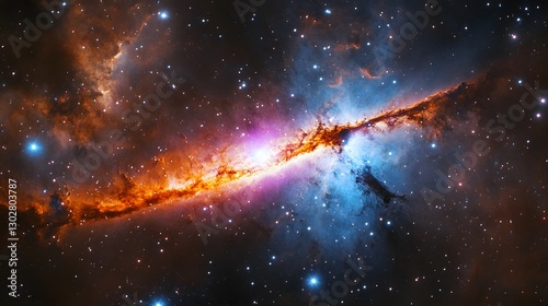 Stunning Cosmic Nebula with Bright Colors and Starry Background