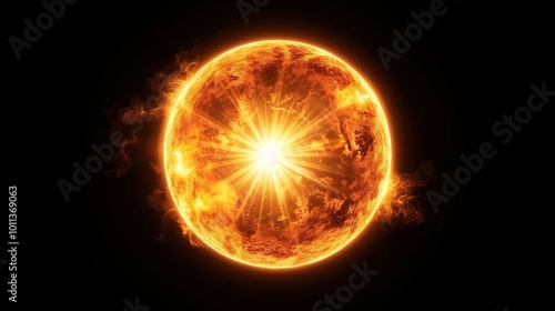 Stunning depiction of a fiery sun with vibrant solar flares against a dark background, showcasing the power of our star.