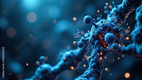 Stunning microscopic view of Nicotinamide Adenine Dinucleotide with glowing elements.
