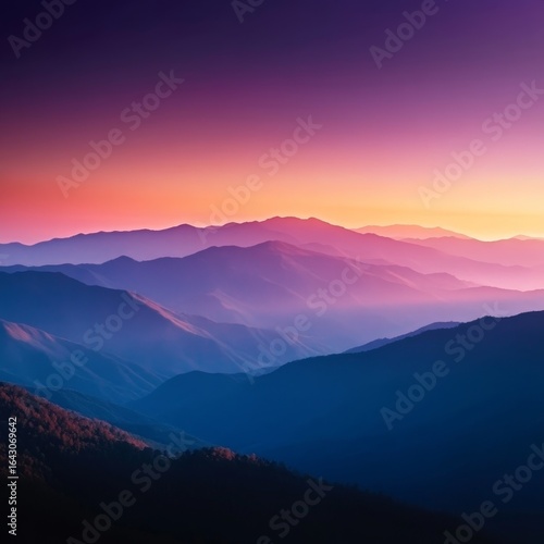 Stunning Mountain Landscape at Sunset with Dramatic Sky and Silhouetted Peaks in Serene Atmosphere