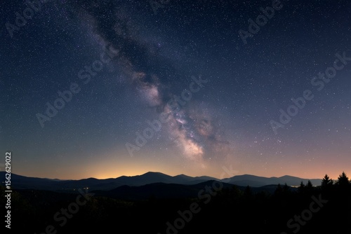 Stunning night sky with milky way over mountain range and forest