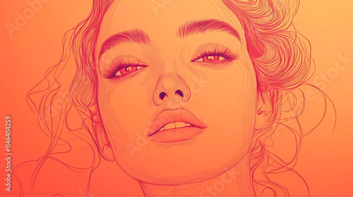 Stunning orange-toned artwork featuring a woman's portrait with flowing hair.