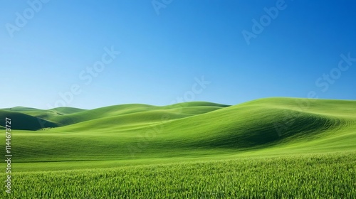Stunning Panoramic View of Rolling Green Hills under Vibrant Blue Sky