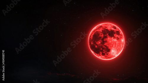 stunning red full moon illuminates night sky, surrounded by dark clouds and twinkling stars, creating captivating and mystical atmosphere