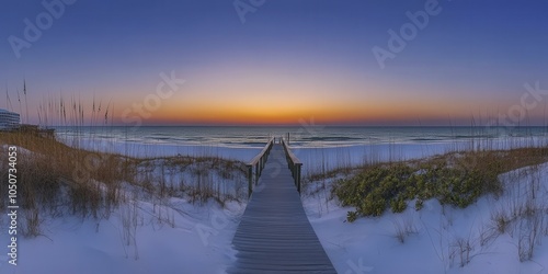 Stunning Sunset Over a Beach with a Wooden Boardwalk
