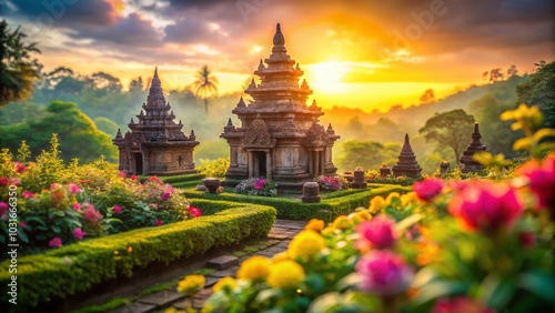 Stunning Tilt-Shift Capture of a Beautiful Temple in Yogyakarta - Serene Architecture and Lush Surroundings