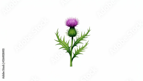 Stunning Watercolor Illustration of Thistle: A Symbol of Scotland with Prickly Leaves and Vibrant Purple Flowers - Perfect for Photo Stock Concepts with Space for Text