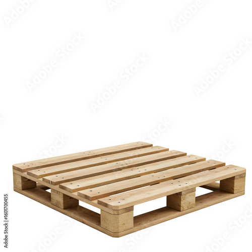 Sturdy wooden pallet, isolated on white or transparent background. PNG format.