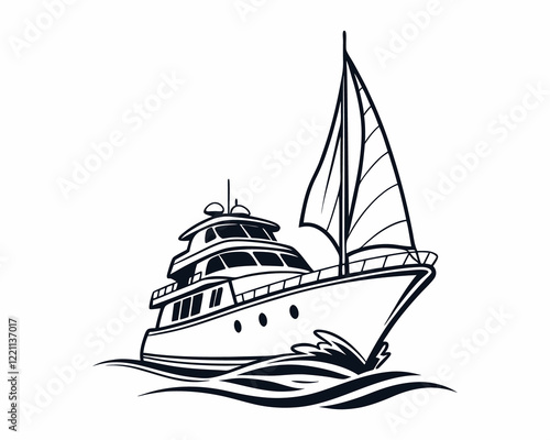 Stylish Black and White Illustration of a Luxurious Yacht at Sea