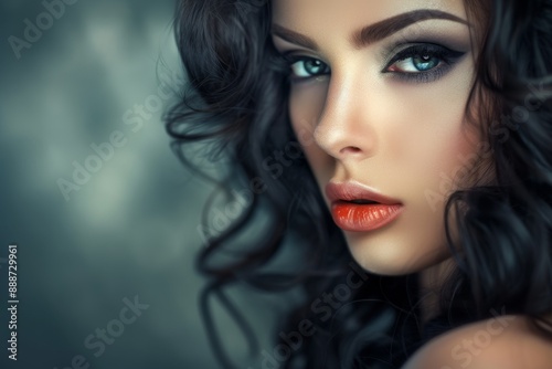 Stylish brunette with gorgeous makeup and sleek black hair