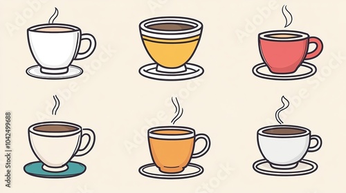 Stylish Coffee Cup Icon in Line Art Design. This minimalist representation captures the essence of a classic coffee cup with clean lines and elegant curves, making it perfect for branding,