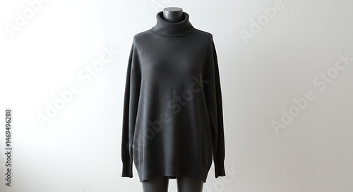 Stylish dark gray turtleneck sweater on a mannequin against a white background