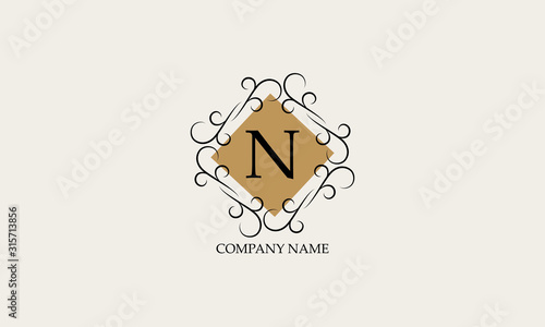 Stylish elegant N logo. Business style and brand of the company, emblem for cafes, bars, restaurants, hotels, boutiques.