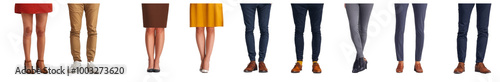 Stylish legs of diverse individuals in various outfits, showcasing range of colors and styles. image captures blend of casual and formal attire, reflecting modern fashion trends