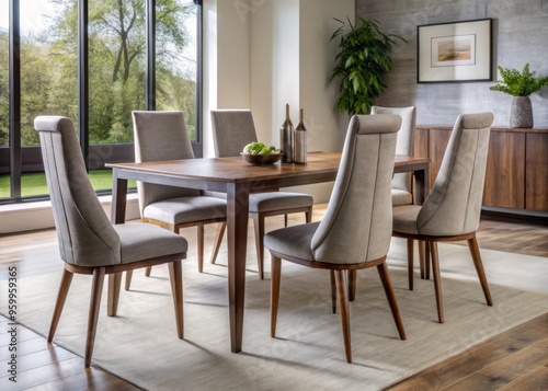 Stylish modern dining chairs feature plush upholstery and sleek designs, creating a comfortable and polished