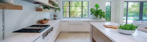 Stylish modern kitchen with an open layout, featuring sleek appliances and contemporary design elements.