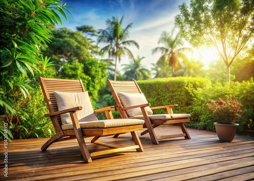 Stylish Pair of Wooden Deck Chairs for Outdoor Relaxation and Comfort