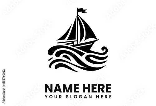 Stylish sailboat logo design, sailing on stylized waves, black and white minimalist graphic.