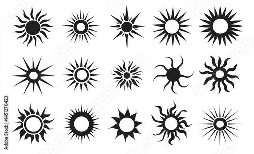Stylish Sunburst Icons: A Collection of Black and White Designs