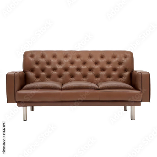 Stylish three seater tufted leather sofa isolated on white background