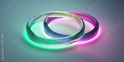 Stylish Translucent Rings Illuminated in Vibrant Colors on a Soft Surface Showcasing Modern Design Elements and Artistic Flair