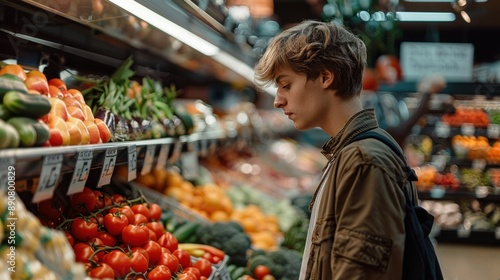 Stylish young transgender man shopping for groceries in a modern supermarket