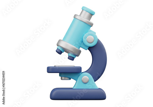 Stylized 3D Blue Microscope Icon for Science and Education on White Background
