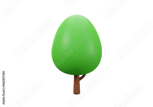 Stylized 3d render of a green tree with a brown trunk isolated on transparent background