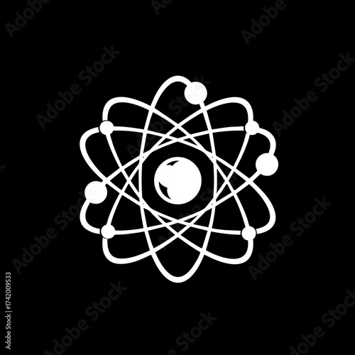 Stylized Atom Icon Representing Science Physics and Molecular Structure.