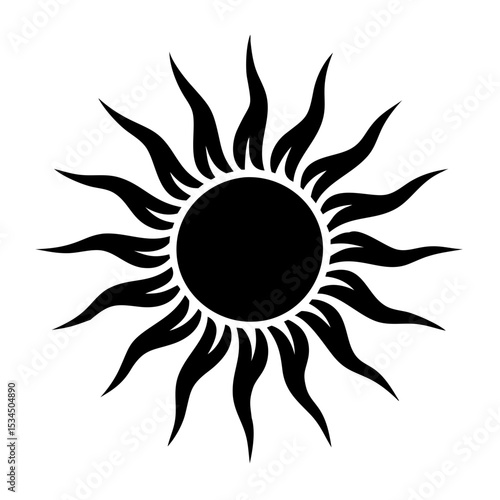 Stylized Black Sun Design with Sharp Rays Emanating from the Center silhouette icon