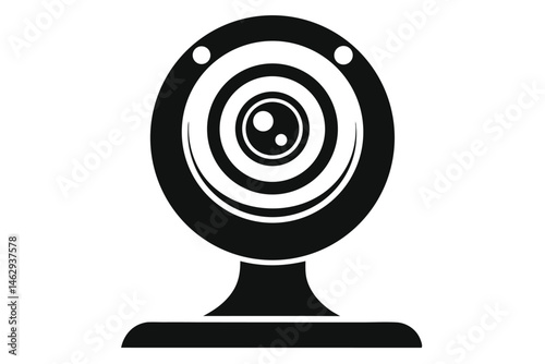 Stylized black webcam shows simple concentric circle design with a solid support base